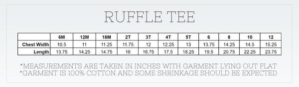 | Ruffle Shirt Size | 12 Months, 18 Months, 2T, 3T, 4T, 5T, 6, 8, 10 |