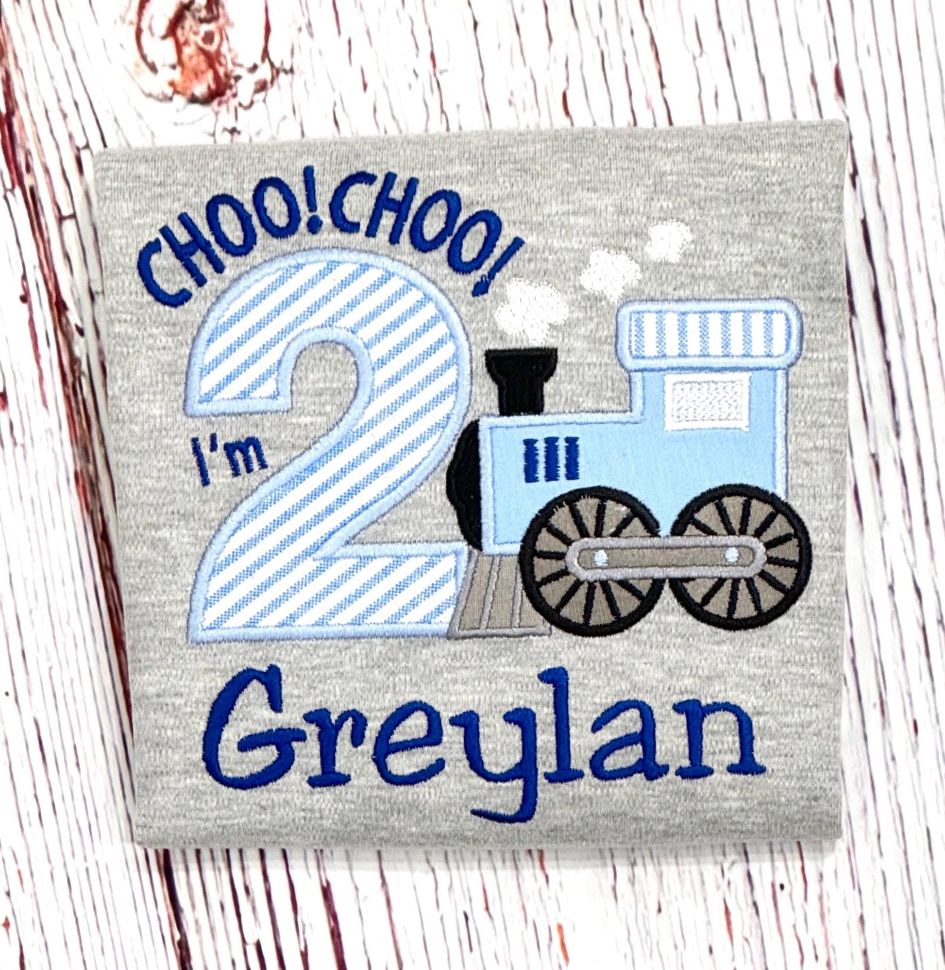 Embroidered Train Birthday Shirt Chugga Chugga Two Two, I'm two Steam Engine Birthday Shirt Train Party Shirt for any age