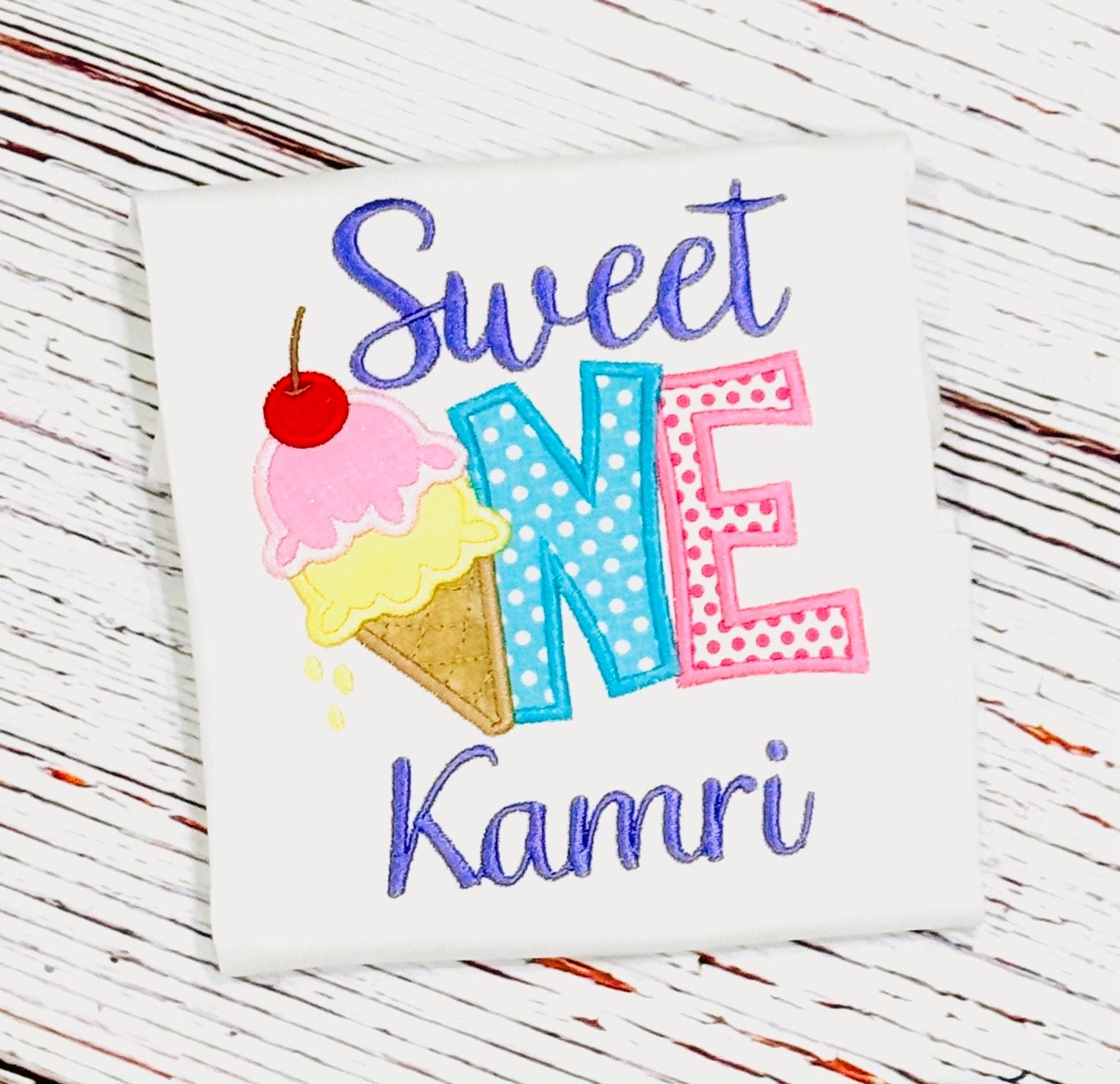 Sweet ONE Girls Ice Cream Birthday Party Shirt Age 1 2 3 4 5 6 7 8 9